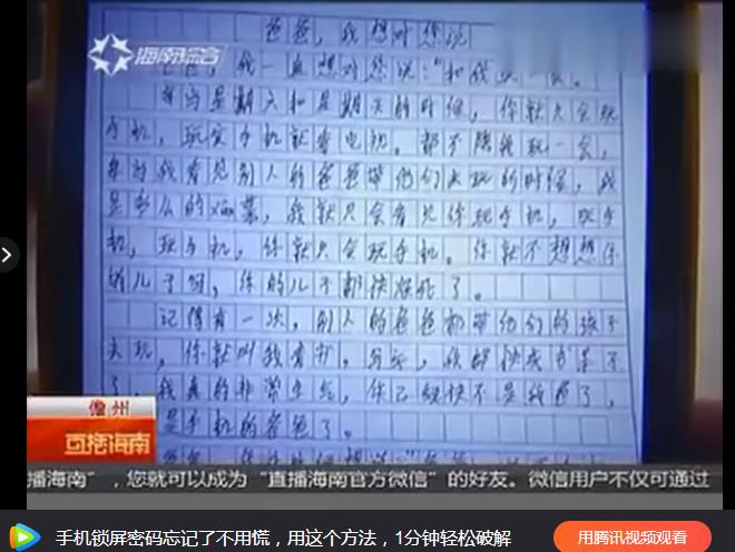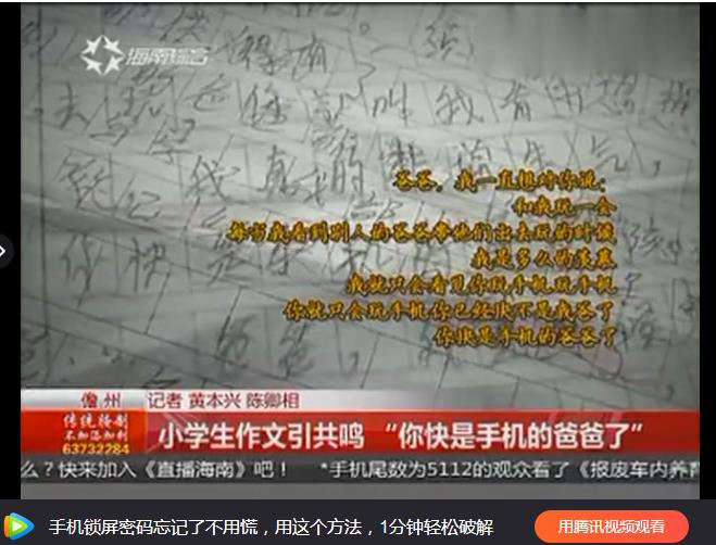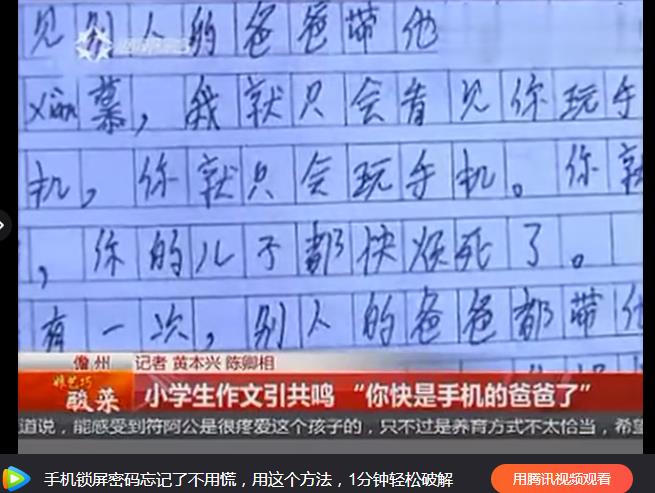 因為爸爸回家就是玩手機、玩手機、玩手機,這個小學生在作文《XX,我想對你說》里,對爸爸說:你快不是我的爸爸了,你快是手機的爸爸了!所有家長都請好好看看這段視頻,看完心里太震撼、、、